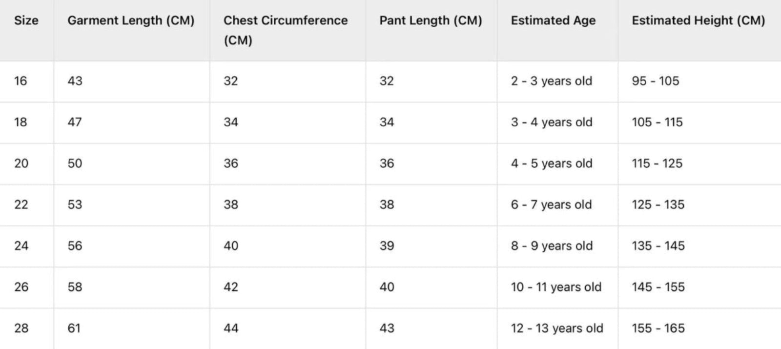 Size Chart